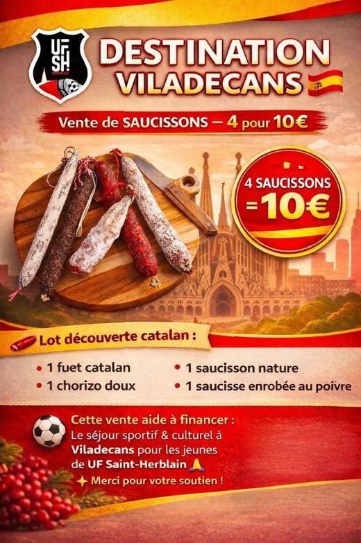 Afin de financer ce projet la Commission organise une vente de lot de 4 saucissons catalans pour 10 €uros.